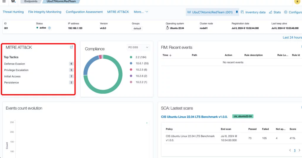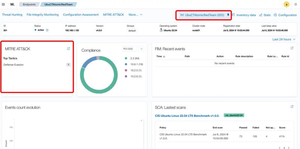 Prima di continuare facciamo delle prove tramite Atomic Red Canary ed il container dedicato , qui sotto Wazuh prima del test: