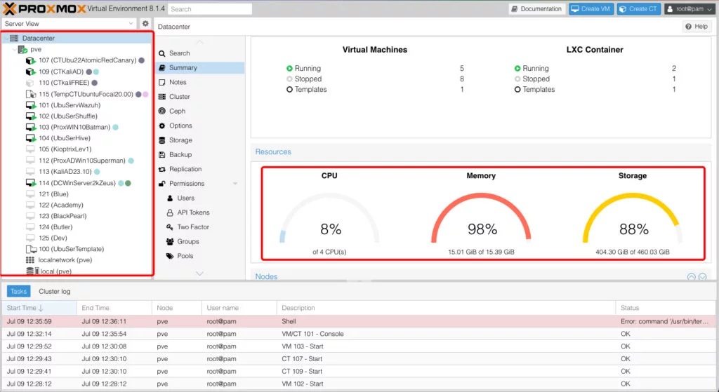 Sul nostro MiniPC abbiamo installato Proxmox come descritto nell`articolo precedente. Sui vari server Ubuntu e containers abbiamo installato come da immagine qui sotto:
