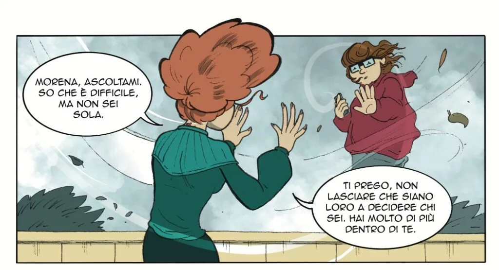 Non ti mentirò: quando ho scritto di Morena sulla terrazza, pronta a sparire nel vuoto, mi sono fermato a pensare. E forse anche tu, leggendo, ti sei ritrovato a sfiorare quel pensiero, quel momento fragile in cui tutto sembra troppo pesante da sopportare. Oppure, ti sarà capitato di incrociare quello sguardo spento, e chiederti in silenzio: “Cosa posso fare, io?”. È questa domanda che ho cercato di inserire in ogni vignetta. Non perché io abbia la soluzione (chi ce l’ha, dopotutto?), ma perché non possiamo permetterci di ignorare quelle storie, nemmeno nelle pieghe più invisibili della nostra società.