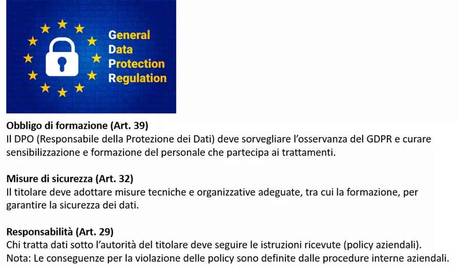 Possiamo cambiare questa cattiva abitudine con l’aiuto delle normative e regolamenti italiani ed europei, ad esempio: il GDPR richiama la necessità di garantire un adeguato livello di consapevolezza e competenza del personale nell’ambito delle misure organizzative di sicurezza; la ISO/IEC 27001 include tali aspetti tra i controlli fondamentali per la sicurezza delle informazioni, mentre la direttiva NIS2 sottolinea il ruolo della preparazione organizzativa nella resilienza cyber.