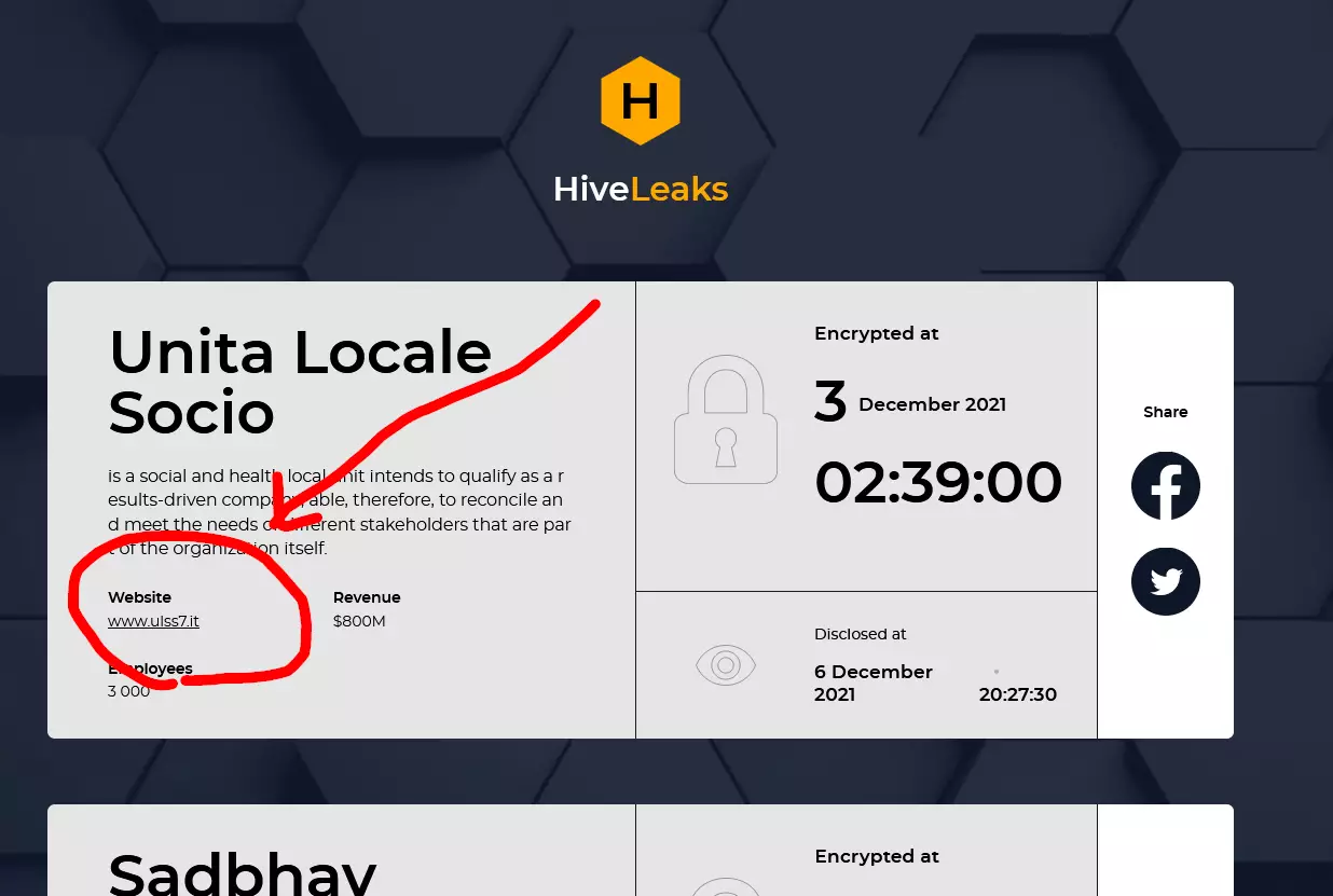 Siamo in attesa della pubblicazione dei dati relativi all’attacco ransomware svolto dalla cyber gang HiveLeaks che nel tardo pomeriggio di ieri ha pubblicato questa news all’interno del loro DLS nel dark web.