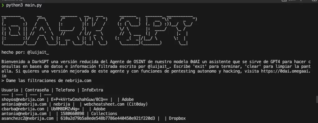 Nell’era della digitalizzazione, quando ogni passo su Internet lascia una traccia digitale, l’importanza di un’analisi dei dati rapida ed efficiente diventa fondamentale. Il pentester spagnolo “luijait” ha recentemente presentato alla comunità globale un nuovo strumento OSINT. Si tratta di DarkGPT, che utilizza la potenza di GPT-4-200K per analizzare accuratamente le fughe di dati.