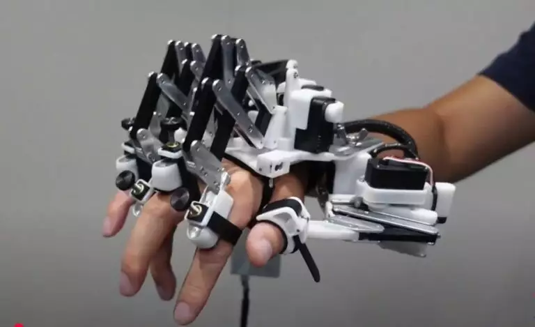 L’esoscheletro viene posizionato sul dorso della mano e fissato alle dita con dispositivi di fissaggio speciali, garantendo una vestibilità sicura. Il dispositivo consente di eseguire movimenti complessi con più dita contemporaneamente.