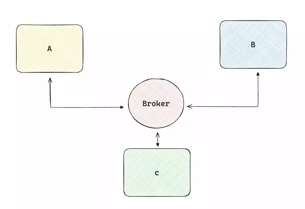 Invece di far si che ogni servizio comunichi con tutti gli altri, potremmo creare un broker che si occupi del flusso di dati, quindi ogni servizio dovrà solamente essere collegato al broker.