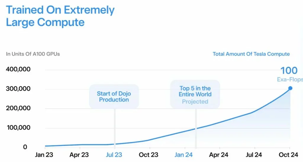 All’AI Day di Tesla nel 2021, la società ha presentato il suo supercomputer Dojo, ma all’epoca la società stava ancora avviando i suoi sforzi. Aveva solo il suo primo chip e dei progetti di addestramento.