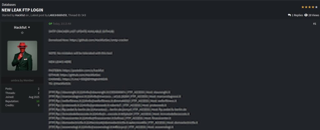 Nel monitoraggio quotidiano dei forum underground capita spesso di imbattersi in leak che, almeno a una prima lettura, sembrano “ordinari”: liste di credenziali, accessi a servizi legacy, dump poco strutturati. Il thread “NEW LEAK FTP LOGIN” comparso su un forum underground rientra formalmente in questa categoria, ma presenta una serie di elementi che meritano attenzione, soprattutto per l’impatto potenziale sul contesto italiano.