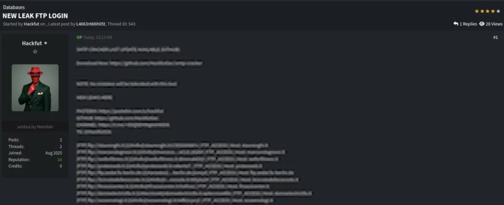 Nel monitoraggio quotidiano dei forum underground capita spesso di imbattersi in leak che, almeno a una prima lettura, sembrano “ordinari”: liste di credenziali, accessi a servizi legacy, dump poco strutturati. Il thread “NEW LEAK FTP LOGIN” comparso su un forum underground rientra formalmente in questa categoria, ma presenta una serie di elementi che meritano attenzione, soprattutto per l’impatto potenziale sul contesto italiano.