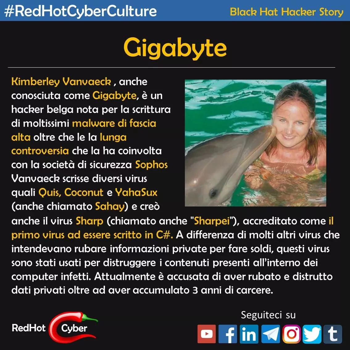 Dietro lo pseudonimo di #Gigabyte, si nascondeva una diciottenne sfrontata capace di sfidare un mondo, quello dell’#informatica, da lei considerato sessista: “Voglio che la gente, specialmente i maschi, sappiano che qui fuori ci sono ragazze che amano i #computer, e non solo per giocare, ma sono circondate da uomini che considerano le donne solo delle stupide”, disse ad una intervista.
