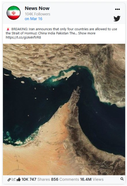 Questo dato colpisce, perché il volume non sta arrivando da migliaia di questi profili, ma da poche decine. infatti sono 20 gli account per rete che hanno generato più di un miliardo di visualizzazioni insieme a 16 milioni di like e 3,5 milioni di condivisioni. Alcuni di questi post infatti, hanno superato 16 milioni di visualizzazioni, come ad esempio quello sulle navi nello Stretto di Hormuz.
