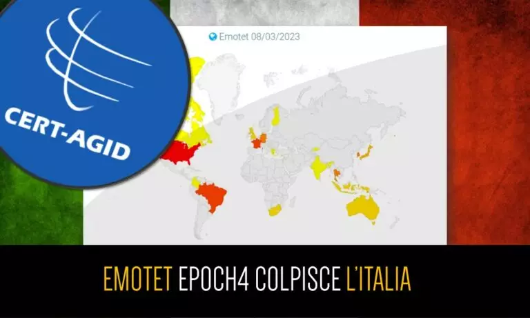 Il CERT-AGID, ha pubblicato recentemente un articolo che riporta che la botnet Emotet, precisamente la versione Epoch4, si sta diffondendo sempre di più in Italia e dopo una pausa di 4 mesi, Emotet riparte con una campagna massiva rivolta ad utenti italiani.