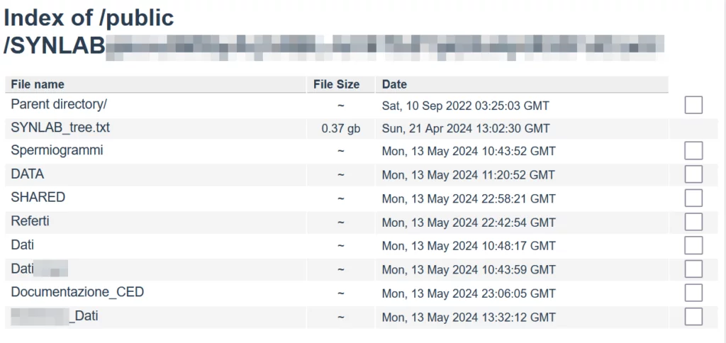 All’interno del directory listing anonimo messo a disposizione da Black Basta, a vista d’occhio ci sono moltissime informazioni sensibili e un file SYNLAB_tree.txt, che riporta i nomi dei file esfiltrati che solo questo è della dimensione di 370MB.