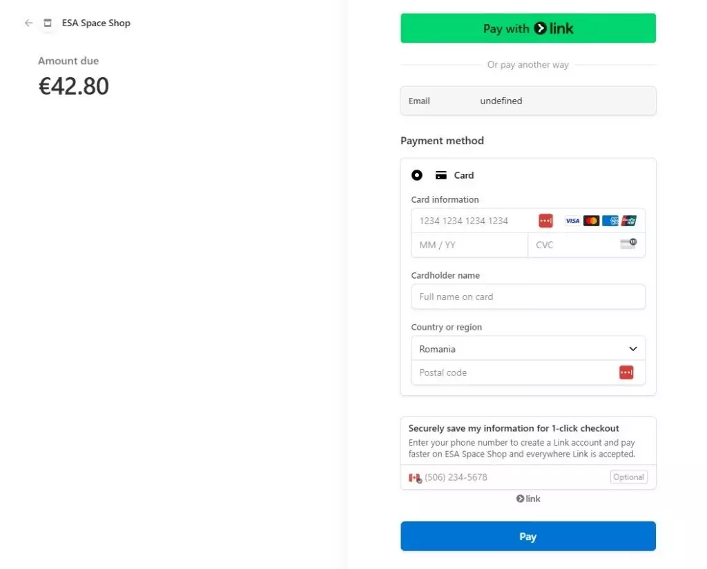Il negozio online ufficiale dell’Agenzia spaziale europea (ESA) è stato violato. Nel sito è stato inserito del codice JavaScript, creando una falsa pagina di pagamento dell’ordine tramite Stripe.