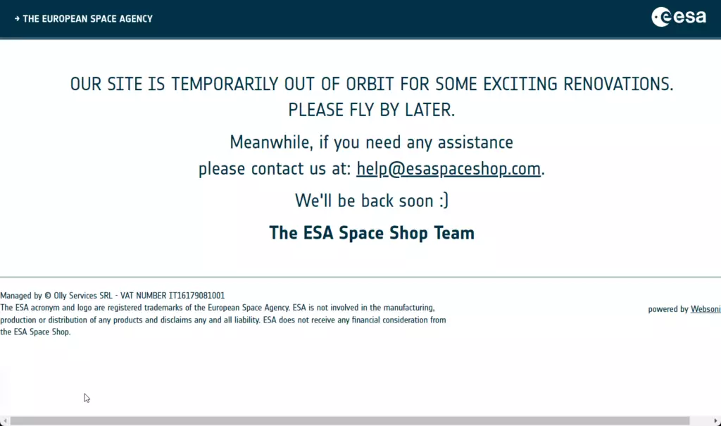 Sansec ha informato i funzionari dell’ESA che il negozio era compromesso e poteva rappresentare una minaccia per i dipendenti dell’agenzia perché era integrato con i sistemi ESA. Il negozio attraverso il quale viene venduta la merce dell’ESA non è attualmente disponibile e si dice che sia “temporaneamente uscito dall’orbita” per aggiornamenti.