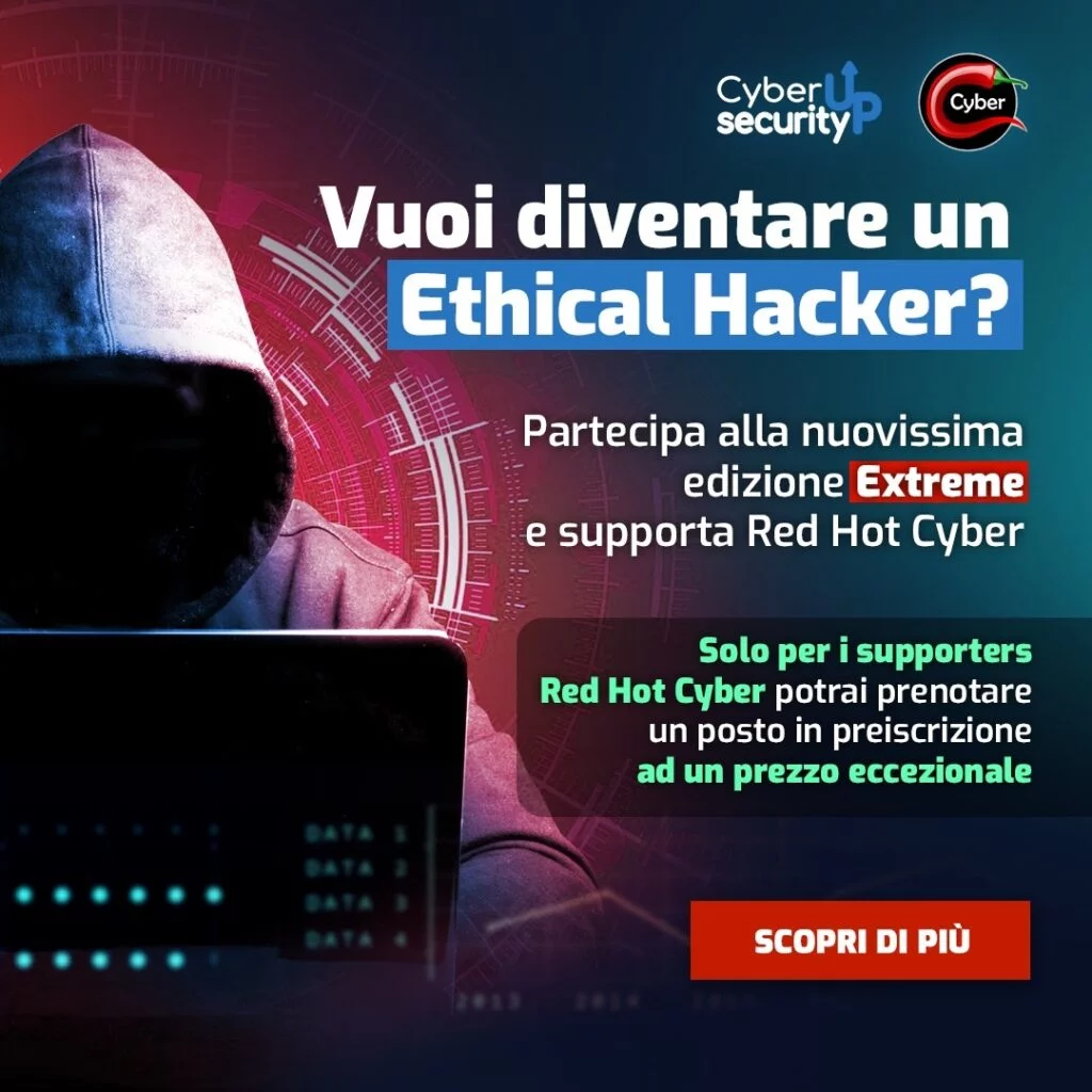Anche per questa sessione e viste le numerose richieste, il corso sarà ad accesso limitato; Sarà possibile assicurare il proprio posto nella classe preiscrivendosi tramite il seguente link https://www.cybersecurityup.it/red-hot-cyber-cpeh