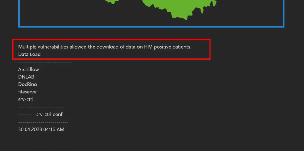 Ma nella giornata di ieri Monti Ransomware ha riportato sul suo Data Leak Site (DLS) che “Molteplici vulnerabilità hanno consentito il download di dati sui pazienti sieropositivi.” come viene riportato nella print screen in calce.