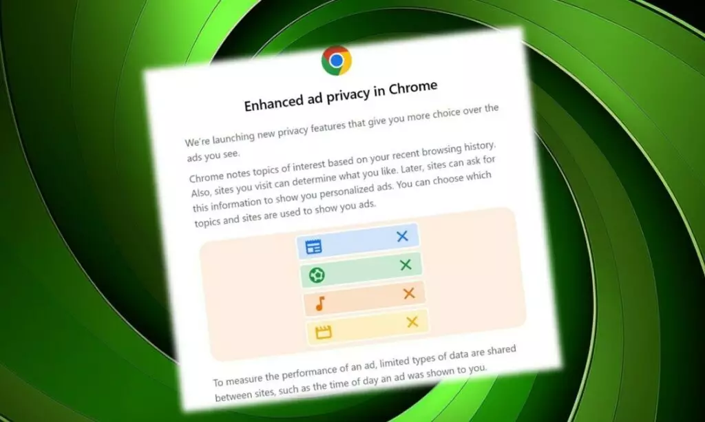 “Stiamo lanciando nuove funzionalità sulla privacy che consentono di scegliere quali annunci visualizzare”, si legge in un avviso in Chrome. Chrome determinerà gli argomenti che ti interessano in base alla tua cronologia di navigazione.