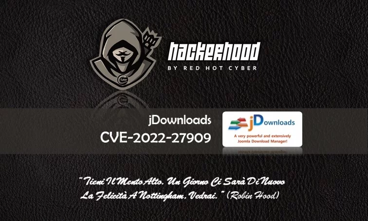 URL Disclosure: https://hackerhood.redhotcyber.com/CVE-2022-27909-jdownloads
