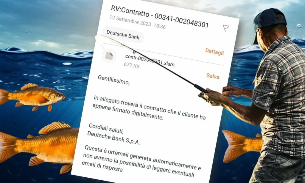 Rappresentando un fatto apparentemente comune come la firma di un contratto, ci si giova dell’autorevolezza del falso mittente (Deutsche Bank) per tentare di ottenere la fiducia della potenziale vittima.