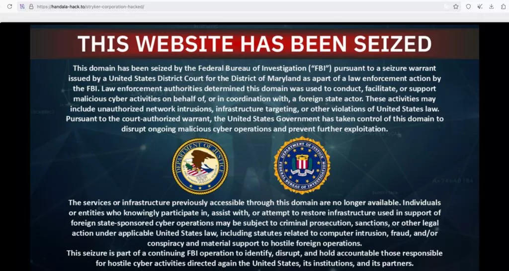 L’11 marzo 2026, tramite Handala-Hack[.]to, il gruppo ha rivendicato un attacco malware distruttivo contro una multinazionale statunitense del settore delle tecnologie medicali.