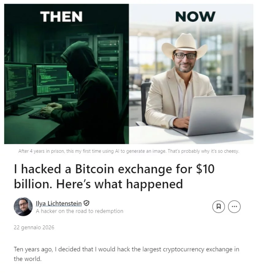 Lichtenstein lo ha raccontato in un post su LinkedIn pubblicato poco dopo il suo rilascio dal carcere. Ha affermato che nel 2016 aveva deciso di hackerare l’allora più grande exchange di criptovalute perché la sua startup non guadagnava quasi nulla e l’idea di “rubare e basta” gli sembrava una via d’uscita.