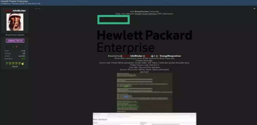 Il panorama della cybersecurity è stato nuovamente scosso da IntelBroker, noto Threat Actor, che ha rivendicato una presunta violazione significativa ai danni di Hewlett Packard Enterprise (HPE).