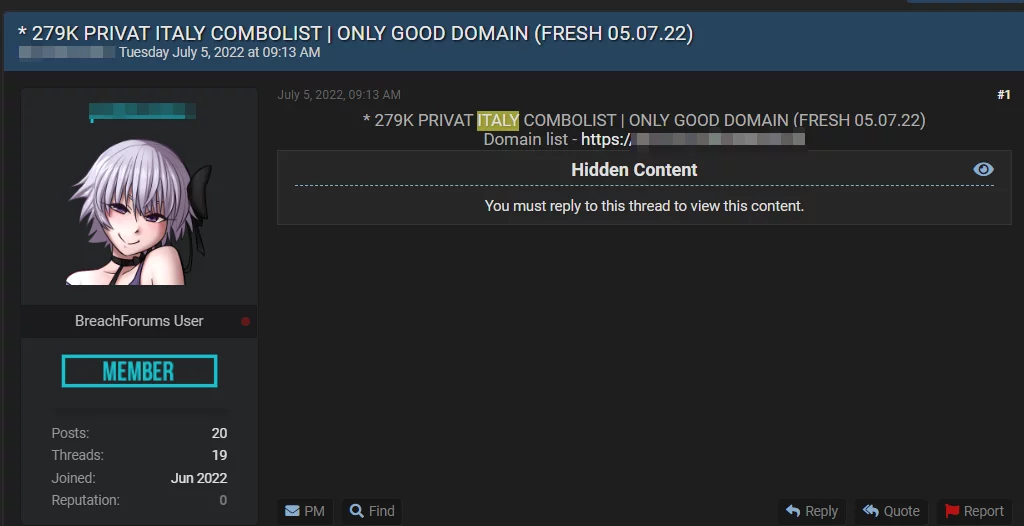 Queste informazioni che girano nelle underground relativamente agli italiani, sono marchiate nei titoli dei post come “Country Targeted”, ovvero obbiettivi specifici di paesi e sono il frutto dell’archiviazione e organizzazione di dati presi da singole fuoriuscite di dati, oppure da collection correlate e poi messe in vendita.