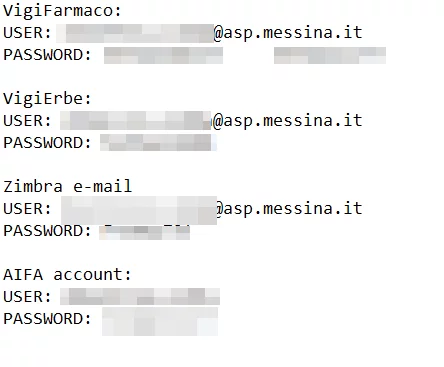 Vengono pubblicate delle password in formato TXT di email ed è presente anche la password per un account relativo alle malattie rare dell’ASP Messina.