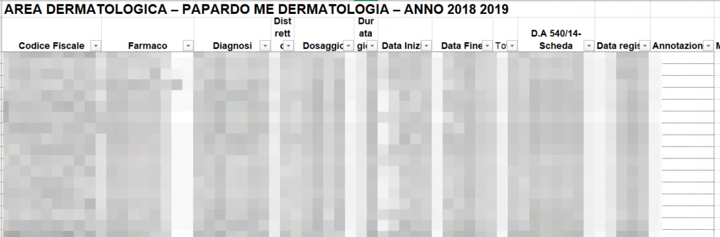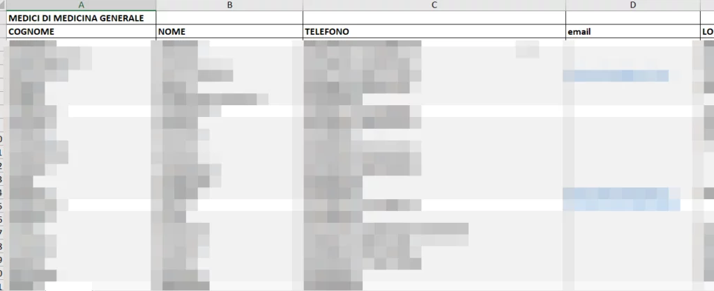 E sembra che siano presenti informazioni sanitarie dei pazienti dove sono presenti nomi e codici fiscali