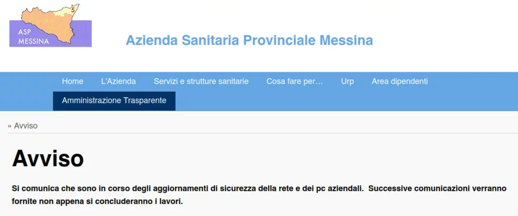 Poco dopo è apparso un avviso sul sito web dell’ASP riportando che erano stati avviati degli aggiornamenti di sicurezza delle reti e dei PC aziendali e che ulteriori comunicazioni sarebbero stati forniti “non appena si concluderanno i lavori”.