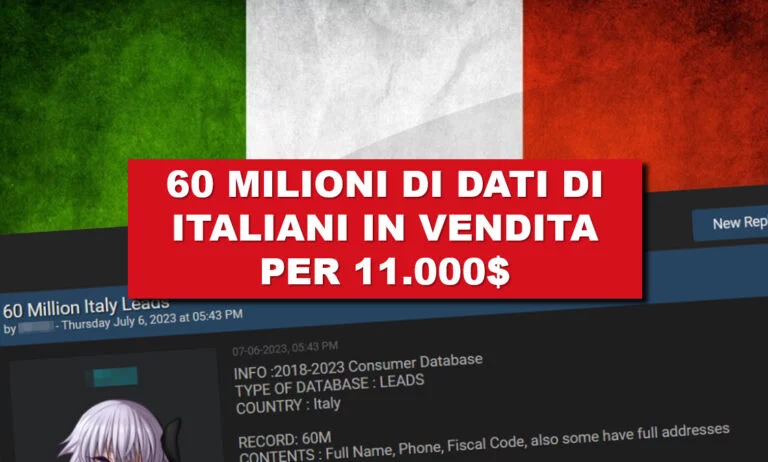 Un post in un famoso un forum underground ha messo in vendita un’enorme quantità di dati personali di utenti italiani. Secondo le informazioni pubblicate, i dati di oltre 60 milioni di individui sono disponibili per l’acquisto al prezzo di 11.000 euro. Tra i dati sensibili rubati figurano nomi completi, numeri di telefono e in alcuni casi anche indirizzi completi.