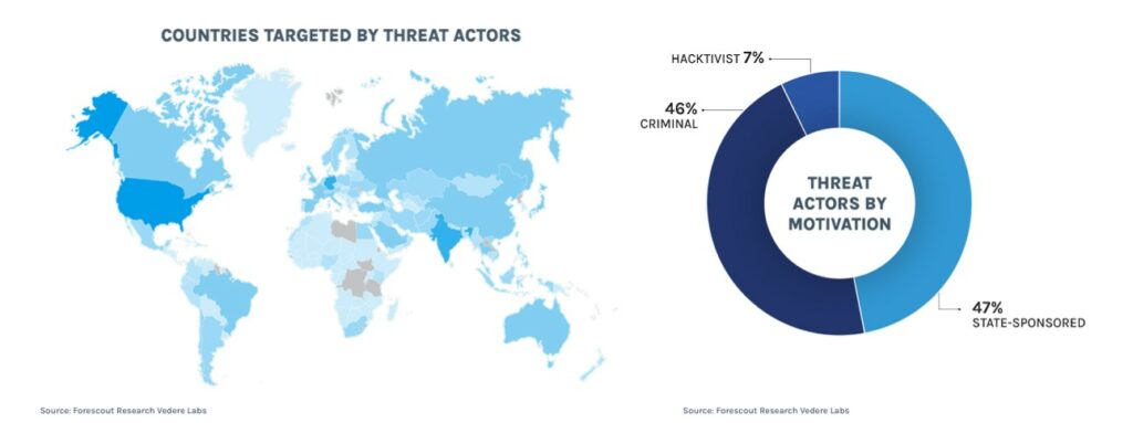 Il database di Vedere Labs evidenzia come gli hacker di Stato rappresentino il cuore pulsante delle minacce globali, costituendo il 47% di tutti i gruppi monitorati nel 2025. La forza d’urto è dominata da un “triumvirato” composto da Cina, Russia e Iran: con rispettivamente 210, 112 e 55 gruppi attivi, queste tre nazioni controllano da sole il 45% dell’intero ecosistema delle minacce statali mondiali.