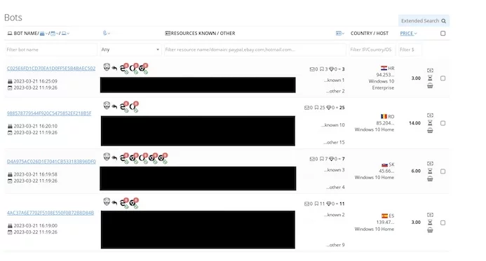 Di solito tali informazioni venivano vendute insieme ad un elenco di servizi a cui la vittima aveva accesso (Netflix, Amazon, account eBay e così via). Inoltre, i bot potevano fornire l’accesso ad altri account non elencati automaticamente, come le reti aziendali.