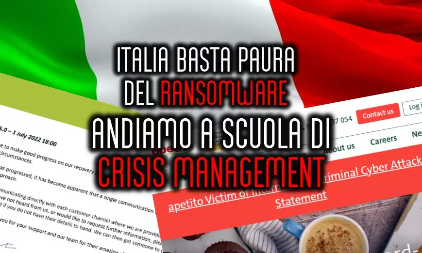 Pertanto impariamo la “crisis management”, in quanto oggi questa “materia”, è uno tra i pilastri portanti nella risposta agli incidenti informatici e soprattutto nella risposta al ransomware e prima o poi capiterà che dovremo metterla in atto.