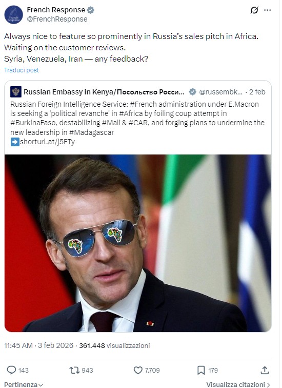 Per contrastare questo fenomeno, il Ministero degli Affari Esteri ha adottato una strategia diplomatica innovativa, lanciando l’account “French Answer” sulla rete X nel settembre 2025. L’account conta attualmente oltre 180.000 follower e si distingue per i suoi post che combinano provocazione, umorismo e ironia. Questo approccio gli consente di rispondere ai troll con una padronanza dei codici dei social media.