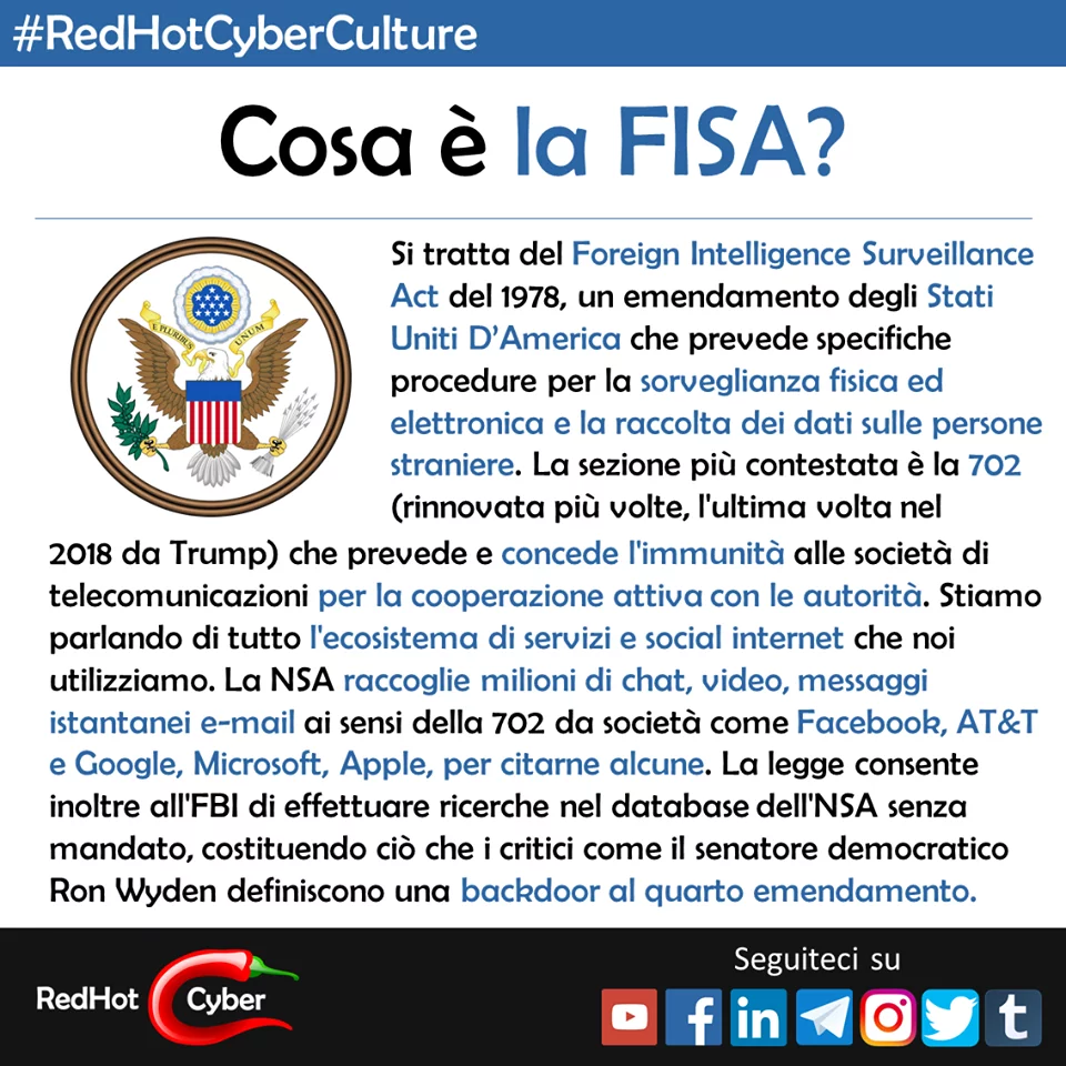 Per effettuare la riforma della “Section 702” della #FISA (Foreign Intelligence #Surveillance Act), riforma che però non c’è stata, ma tale legge è stata prorogata nel 2018 dal presidente Donald #Trump.