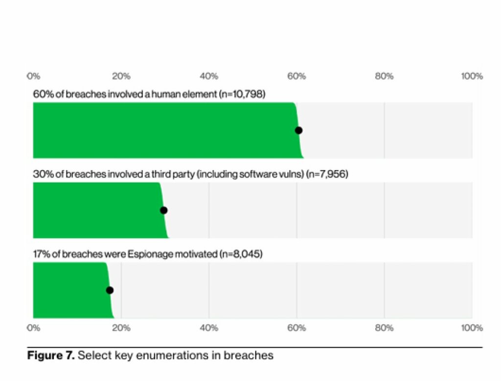 Il Verizon Data Breach Investigations Report 2025, mostra che circa il 60 % delle violazioni di dati coinvolge un elemento umano – phishing, uso di credenziali compromesse o errori operativi – confermando quanto il comportamento delle persone resti un punto critico nella catena degli attacchi.