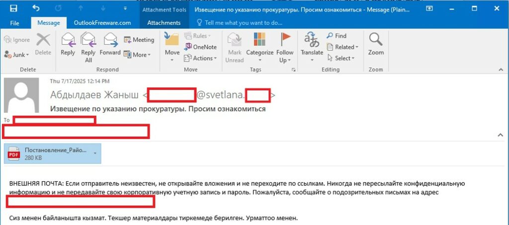 Il vettore principale resta il phishing mirato. Le email sono scritte nelle lingue locali, uzbeko o kirghizo, e si spacciano per documenti ufficiali di tribunali o procure. All’interno c’è un PDF con link per scaricare un file JAR, che avvia il caricatore malevolo. L’utente vede un messaggio falso di errore, ignora tutto, ma il malware lavora silenzioso scaricando e installando NetSupport RAT.