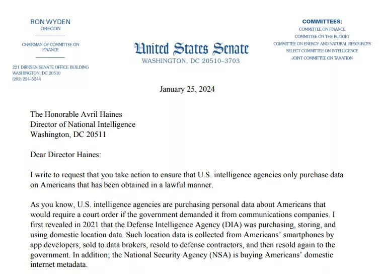 Wyden ha esortato il DNI a ordinare alle agenzie di intelligence statunitensi di smettere di acquistare i dati privati degli americani ottenuti illegalmente. Questo in violazione delle nuove regole delineate dalla Federal Trade Commission questo mese. Attraverso questo caso, la FTC ha annunciato che gli americani devono essere informati e accettare che i loro dati vengano venduti a “appaltatori governativi per scopi di sicurezza nazionale”, affinché la pratica sia consentita.