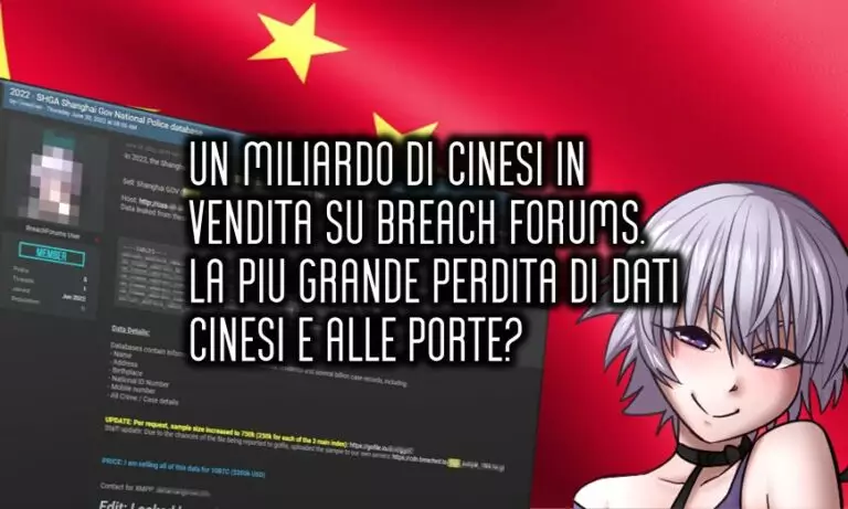 Nel post si è affermato che terabyte di dati e informazioni relative ad un miliardo di cittadini cinesi sono stati resi disponibili a seguito di una fuga di informazioni di un database della polizia nazionale di Shanghai nel 2022.