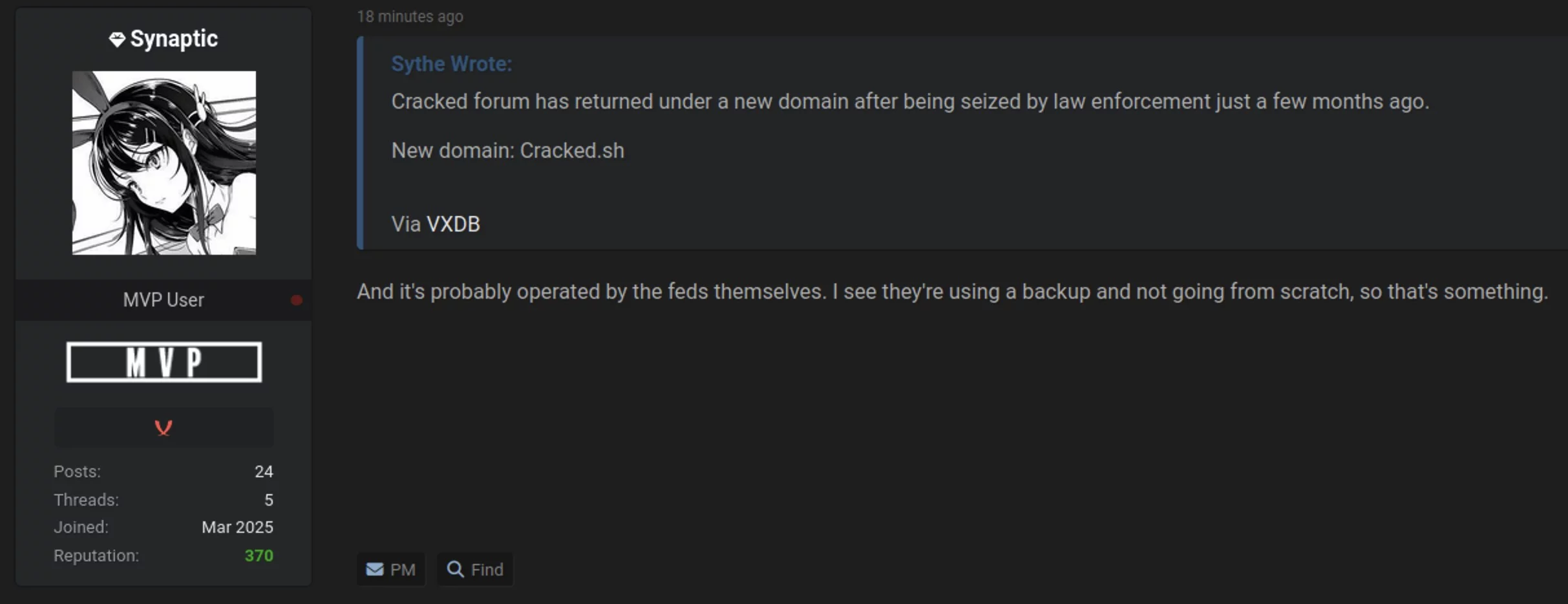 Come spesso accade in casi di “rinascite” così improvvise e ben orchestrate, non mancano le ipotesi più controverse. In un thread pubblicato su BreachForums, l’utente Synaptic ha sollevato un dubbio pesante: