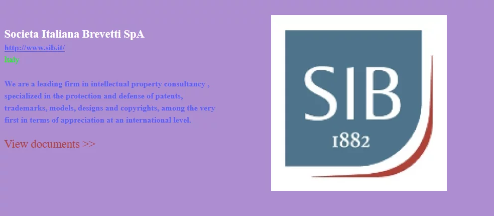 Sul sito della Società Italiana Brevetti viene riportato: