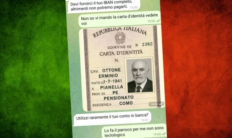 Viene fornito un IBAN falso, una carta d’identità evidentemente fittizia e addirittura un finto bonifico “ricevuto” dalla sedicente “azienda”. Il tutto per testare fin dove può spingersi la truffatrice.