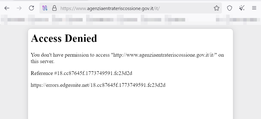 Tuttavia, questo passaggio non avviene correttamente: l’utente approda su una pagina del sito ufficiale che restituisce un errore di “Access Denied” o di directory listing. Questo errore serve ai malintenzionati per confondere ulteriormente la vittima, che attribuirà il mancato accesso a un semplice problema tecnico del sito governativo, senza sospettare che i propri dati siano appena stati rubati.