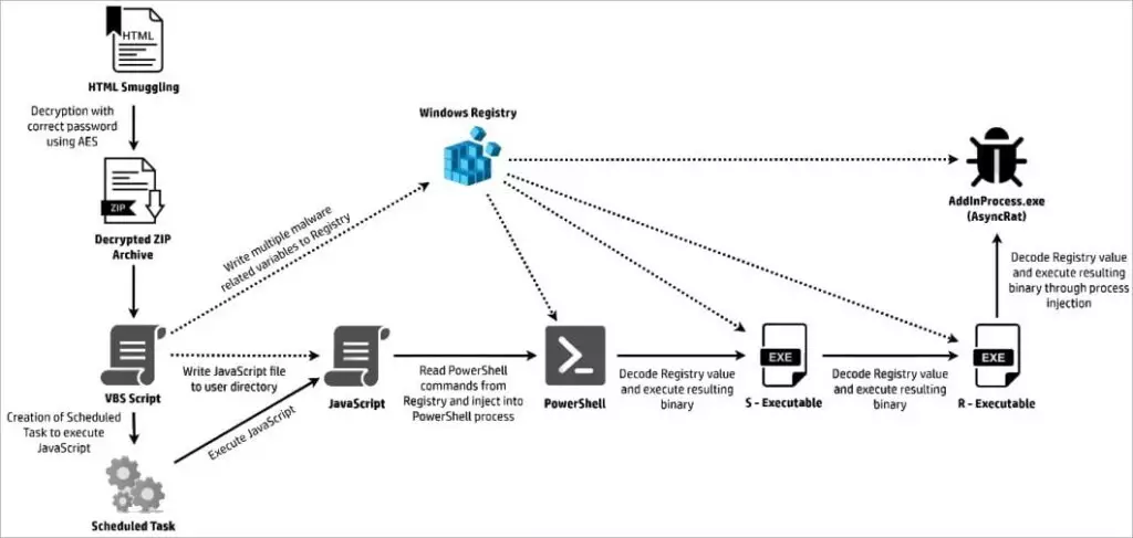 Gli analisti di HP Wolf Security hanno esaminato i recenti attacchi contro gli utenti francesi e hanno scoperto che il malware AsyncRAT è stato distribuito utilizzando un codice dannoso chiaramente creato con l’aiuto dell’intelligenza artificiale.