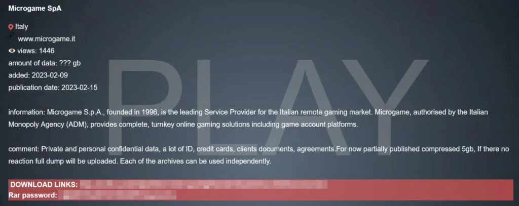 Oggi, la banda ransomware Play, rivendica l’attacco informatico all’interno del suo data leak site (DLS). Royal pubblica all’interno del sito un post dove informa della violazione delle infrastrutture IT dell’azienda.