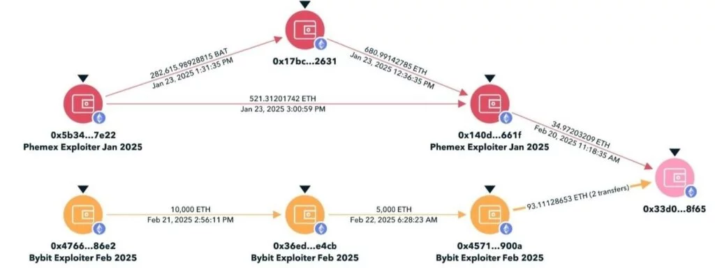 Il fatto è che gli aggressori hanno inviato i fondi rubati da Bybit a un indirizzo Ethereum che era già apparso in precedenza negli attacchi a Phemex, BingX e Poloniex.