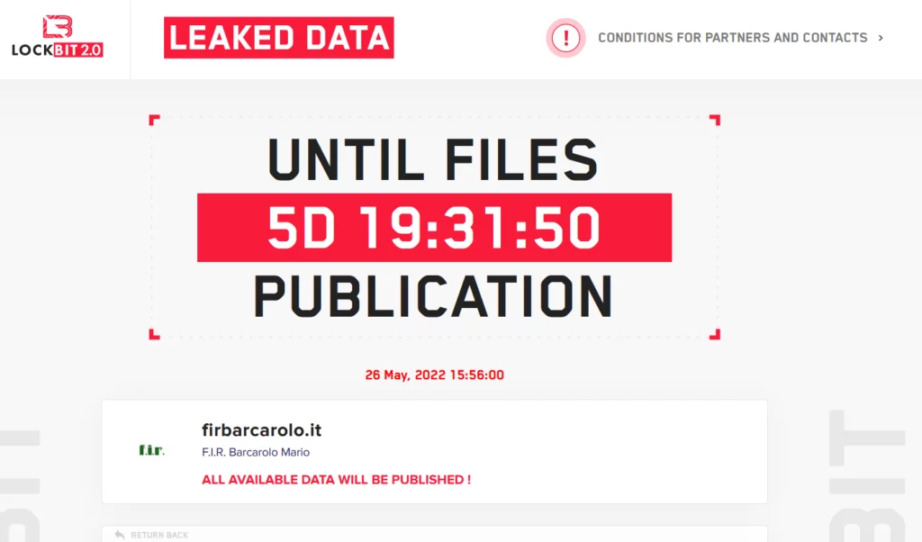 Lockbit ha in mano oltre 63.000 file esfiltrati dalle infrastrutture IT dell’azienda che verranno pubblicati, come da “countdown”, tra circa 5 giorni, un tempo standard che la gang imposta prima di rilasciare i dati trafugati nel darkweb.