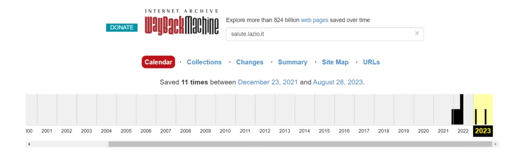 Siamo andati anche a visitare il sito utilizzando la wayback machine per comprendere la storia e la movimentazione di questo sotto dominio. Il sito in questione, ha avuto delle movimentazioni tra dicembre 2021 e il 28 agosto 2023.