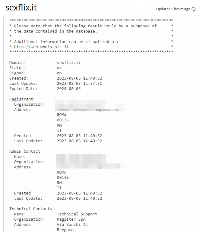 Il sito come si presentava il 26 febbraio del 2022L’ultima movimentazione del 28 agosto 2023, quando il sito ha iniziato a mostrare contenuti hot.