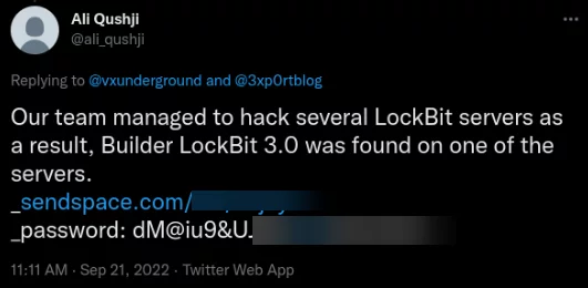 E’ comparso poco fa un post su Twitter, dove viene riportato che una persona sconosciuta dal nome @ali_qushji, ha riportato che il suo team ha violato i server della cybergang LockBit rilasciando una serie di dati su GitHub.